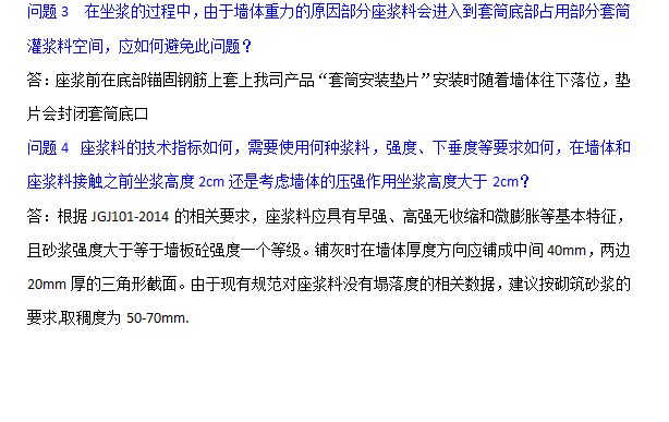 問題3 在坐漿的過程中,由于墻體重力的原因部分座漿料會進入到套筒底部占用部分套筒灌漿料空間,應如何避免此問題?