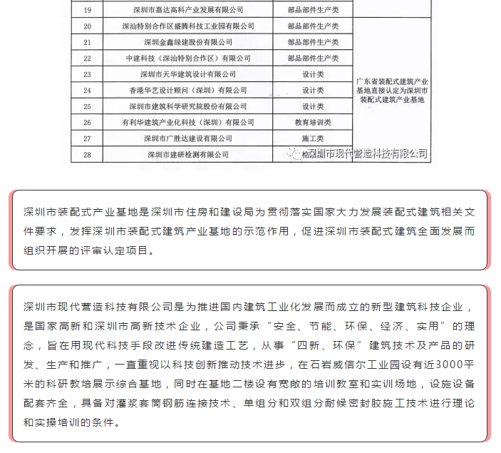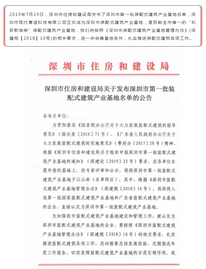 喜訊!現(xiàn)代營造獲批成為深圳市第一批裝配式建筑產(chǎn)業(yè)基地