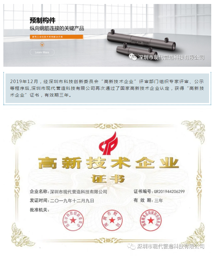 喜訊!現代營造再次通過國家高新技術企業認定
